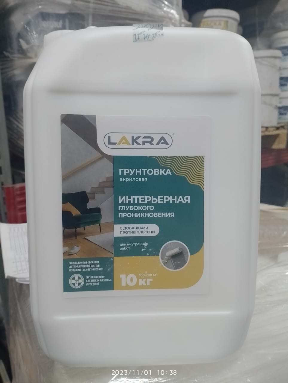 Грунтовка, акриловая против плесени Лакра интерьерный глубокого проникновения, 10кг