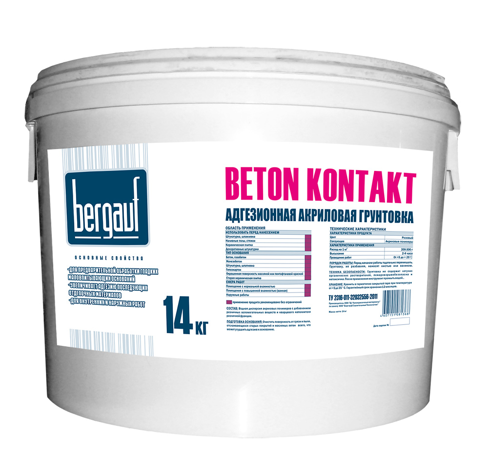 Грунтовка Бетон-контакт BERGAUF Praktik U лето/зима, 14кг