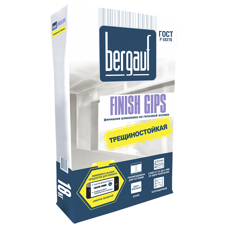 Шпаклевка гипсовая BERGAUF Finish Gips, 18кг