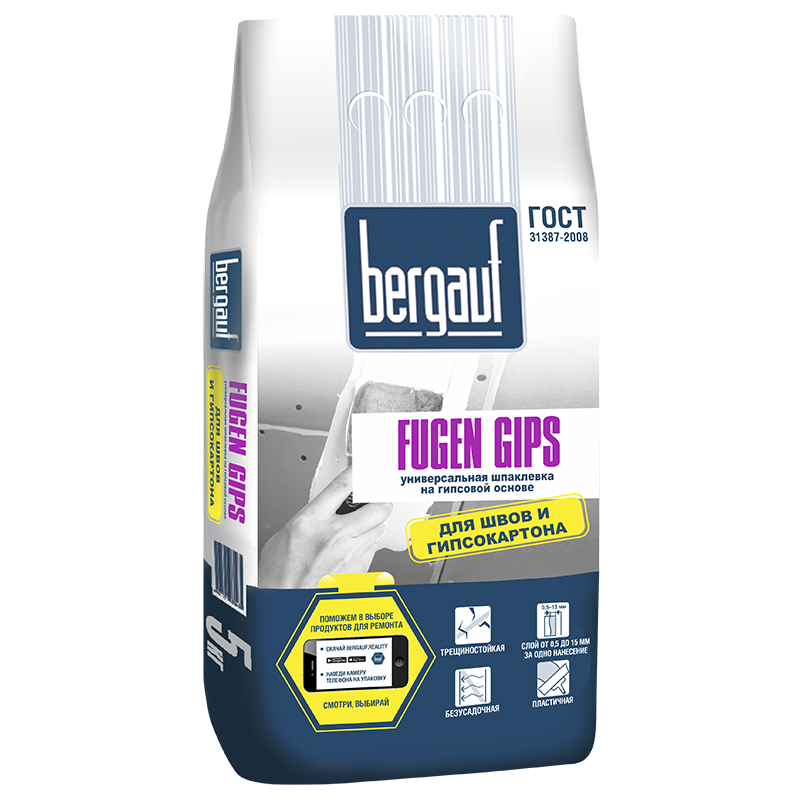 Шпаклевка гипсовая BERGAUF Fugen Gips, 5кг