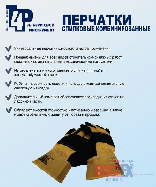 Краги спилковые комбинированные Т4Р Лакра (120пар/упак)